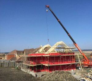 Timber Frame rises at Beacon Heights The semi-detached homes at Beacon Heights use a timber frame structure. The homes take shape after a successful few weeks and promote the space within.